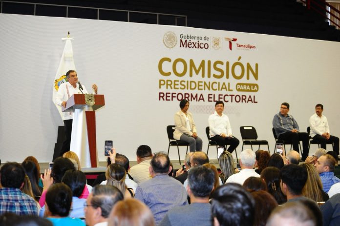 Por su parte, el gobernador Américo Villarreal Anaya, destacó la relevancia histórica de este proceso de consulta sobre la reforma electoral, al señalar que se trata de un ejercicio de participación ciudadana, para “consensuar entre todos los ciudadanos, como ya nos ha sido referido, la percepción de dónde podemos tener mejoras en nuestro proceso electoral y, por tanto, democrático”.