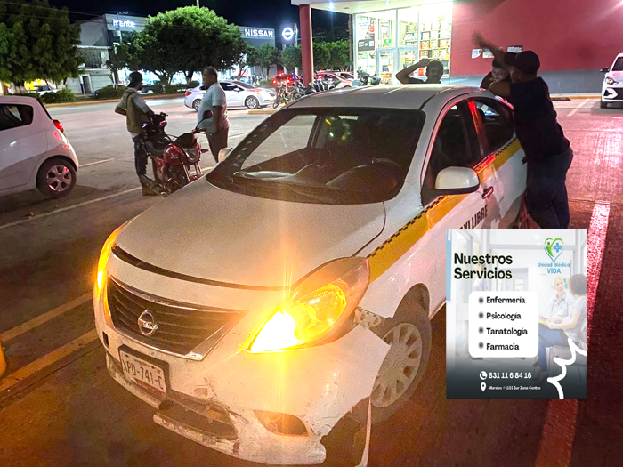 Al llegar al cruce con Magiscatzin se impacto en contra de un automóvil Nissan, versa modificado como taxi del municipio de Antiguo Morelos, el cual era conducido por Alfredo Álvarez Morales, de 51 años de edad, quien dijo tener su domicilio en El Ejido Morelos, de aquel municipio.