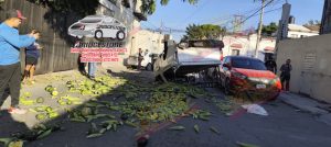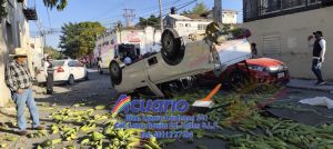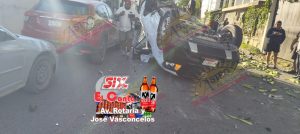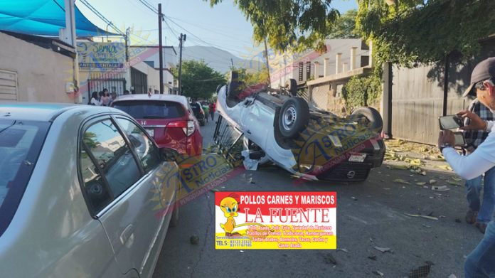 El aparatoso accidente ocurrió en el cruce de las calles Pino Suárez (18) y Víctor Rosales, cuando los tripulantes de la Nissan, que presuntamente eran perseguidos a toda velocidad sobre la calle Rosales, hicieron caso omiso a la señal de alto, siendo alcanzados e impactados con fuerza por el Aveo. El golpe fue tan violento que la camioneta terminó llantas arriba, destrozada y con sus ocupantes atrapados entre los fierros retorcidos.