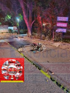 Los lamentables hechos se registraron alrededor de las 22:30 horas, frente al hotel Cumbres, cuando el joven se desplazaba a exceso de velocidad a bordo de una motocicleta Italika 250 tipo Cross, en colores azul, rojo y blanco, circulando con dirección hacia la cabecera municipal.