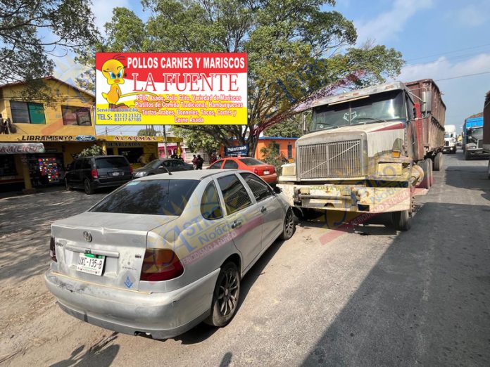El percance se registró en el cruce del libramiento Américo Villarreal y la avenida Plutarco Elías Calles, en la colonia Nacional Colectiva, Tercera Etapa, donde el pesado vehículo colisionó contra un automóvil Volkswagen Derby, color no especificado, con placas de circulación UXC-135-B del estado de Tamaulipas.