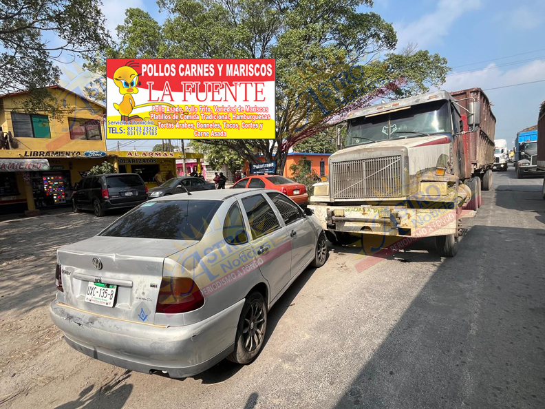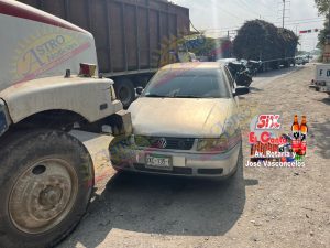 De acuerdo con la información recabada en el lugar, la unidad afectada es propiedad del ciudadano Sergio N., quien no se encontraba a bordo del vehículo al momento del accidente, por lo que no se reportaron personas lesionadas. Sin embargo, el automóvil sufrió severos daños en su estructura tras ser embestido y arrastrado varios metros por el tráiler cañero.