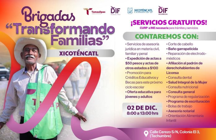 El Gobierno de Tamaulipas y el DIF Xicoténcatl invitan a la comunidad a participar en las Brigadas “Transformando Familias”.