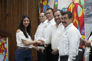 En este marco, se realizó la entrega simbólica del cheque de ITABEC, correspondiente a 8 111 becas, destinadas a estudiantes de las diferentes facultades y unidades académicas de la UAT.
