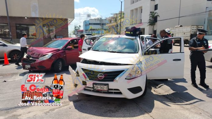Varias personas resultaron con lesiones que por fortuna no fueron de gravedad, entre ellas un menor, al registrarse fuerte choque entre dos automóviles particulares en transitado crucero de Tampico.