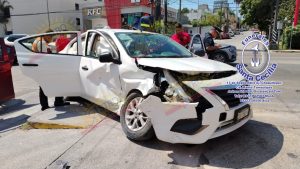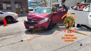 La autoridad vial estableció que un vehículo Chevrolet color rojo con placas de Tamaulipas, impactó en el costado derecho a un Nissan blanco, resultando ambas unidades con daños considerables en la carrocería.