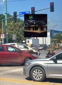 Paramédicos de la Cruz Roja se movilizaron para valorar a un adulto y un menor que ha viajaban en el primer vehículo, así como a cuatro ocupantes del segundo, quienes resultaron con algunos golpes, en tanto el personal vial trabajaba en el sitio para deslindar responsabilidades, ya que en la intersección existe un semáforo y alguno de los conductores omitió La luz roja.