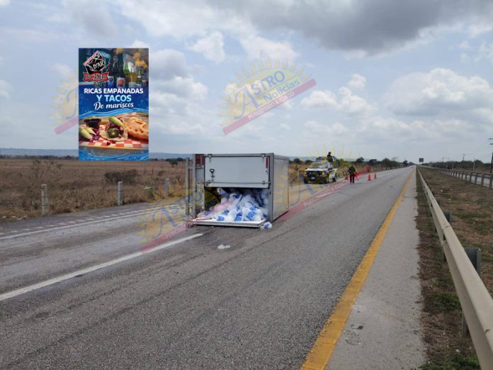 Altamira, Tamaulipas.- La circulación en la Carretera Federal 80 Tampico–Mante, a la altura del kilómetro 58, se encuentra parcialmente suspendida luego de la volcadura de un vehículo cerca de la entrada al ejido Santa Juana.