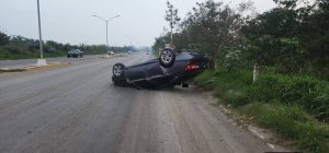 Vehículo se impactó con poste y volcó en el Corredor Urbano “Luis Donaldo Colosio”, Ciudad Madero