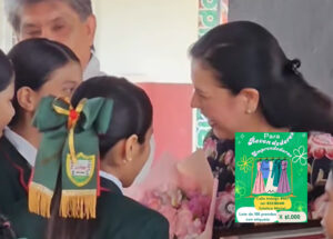 ​”¡Buenos días familia! Iniciamos esta productiva semana en la escuela Niños Héroes, agradezco el recibimiento de padres de familia, alumnos y maestros,” expresó la presidenta.