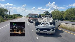 #SLP | Sobre el tramo #TamuÃn – #Ébano, cerca de La Rosita, se reportó la volcadura de un vehÃculo, dejando a una persona aparentemente atrapada en su interior.