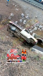 En Gómez Farias, Tamaulipas…Dos personas lesionadas es el saldo que dejó una aparatosa volcadura registrada la tarde de este martes sobre la carretera Antigua Mante–Ocampo, a la altura del ejido Guadalupe Victoria.