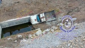 Tras la falla mecánica, la unidad salió del camino y terminó volcada dentro de un canal tipo canalete ubicado a un costado de la carretera, generando momentos de alarma entre personas que transitaban por el lugar.
