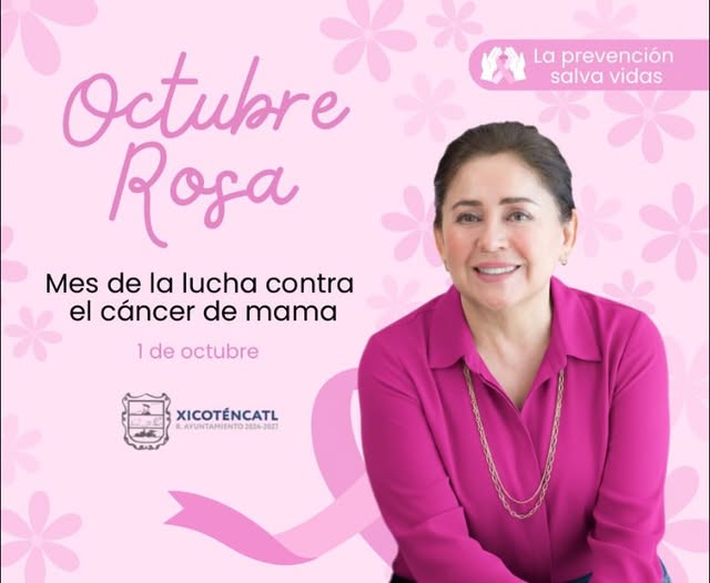 Mariela López Sosa, presidenta municipal de Xicoténcatl, Tamaulipas, México, hace un llamado a todas las mujeres, a la población en general, para que este mes de octubre, denominado el Octubre Rosa, por estar dedicado a la concientización en torno a la importancia de la revisión médica en las mujeres para evitar el cáncer mamario, tomen las provisiones preventivas necesarias para evitar esta enfermedad.